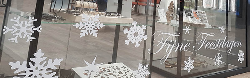 Voor de tijdelijke bestickering van de etalage hebben wij gebruik gemaakt van een glasheldere statische raamfolie welke wij voorzien hebben van een winterse opdruk. Het grote voordeel is dat de montage van de folie kinderlijk eenvoudig is wat eventueel door de winkelier of personeel zelf uitgevoerd kan worden. Daarbij is de folie na de feestdagen minstens net zo eenvoudig weer te verwijderen. Door de folie voorzichtig en stofvrij op te bergen is deze bovendien volgend jaar gewoon weer bruikbaar! Zo bespaart u het komende jaar weer op de kosten voor nieuwe bestickering van de etalage!