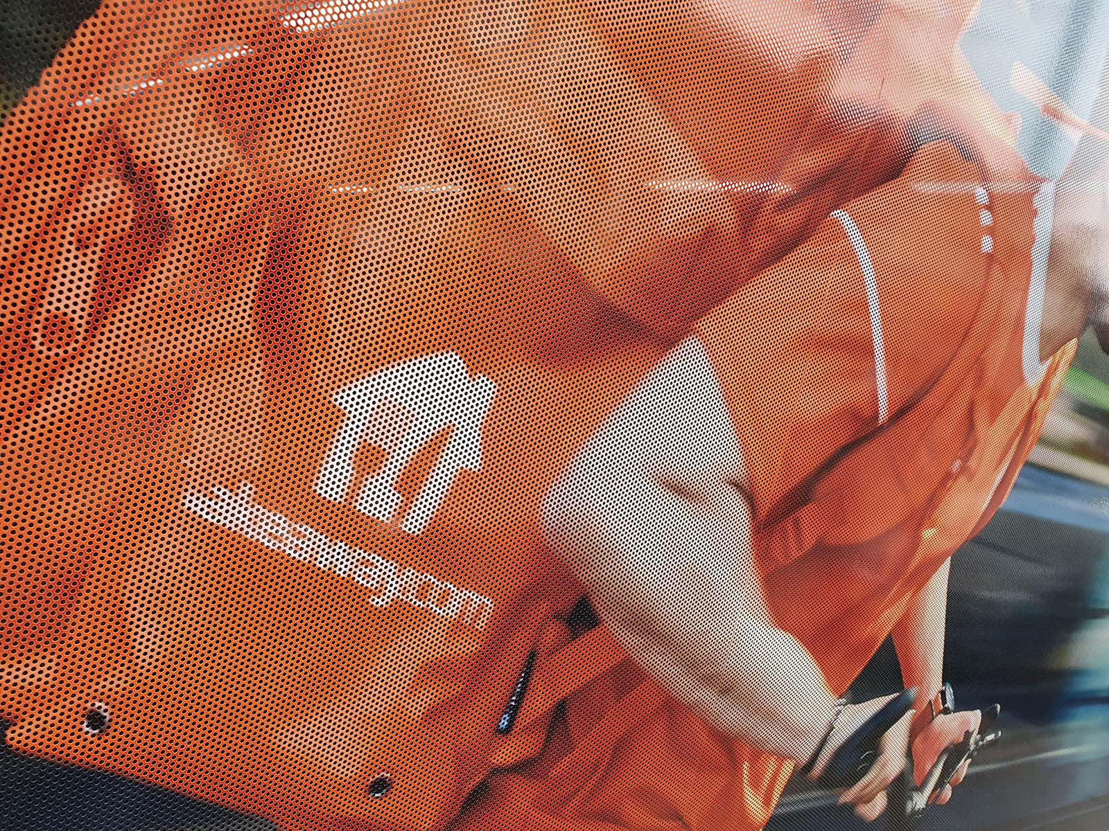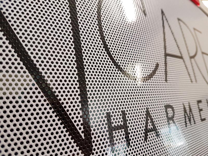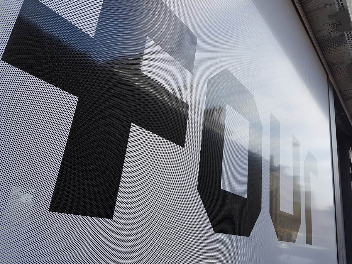 One Way Vision is een bekende naam voor ook wel perforatiefolie of gaatjesfolie. U heeft de geperforeerde stickers vast wel eens gezien op bedrukte winkelruiten of stadsbussen. Deze raamstickers bestaan uit een zwarte plakkant welke tegen het raam wordt bevestigd. Door de combinatie van het gaatjespatroon en de zwarte kleefkant is het goed mogelijk om van binnen wel naar buiten te kijken. De andere kant is standaard wit en kan fullcolour bedrukt worden met foto's, logo's of teksten.