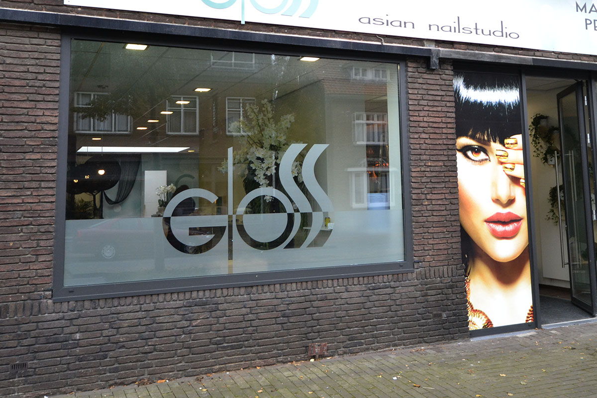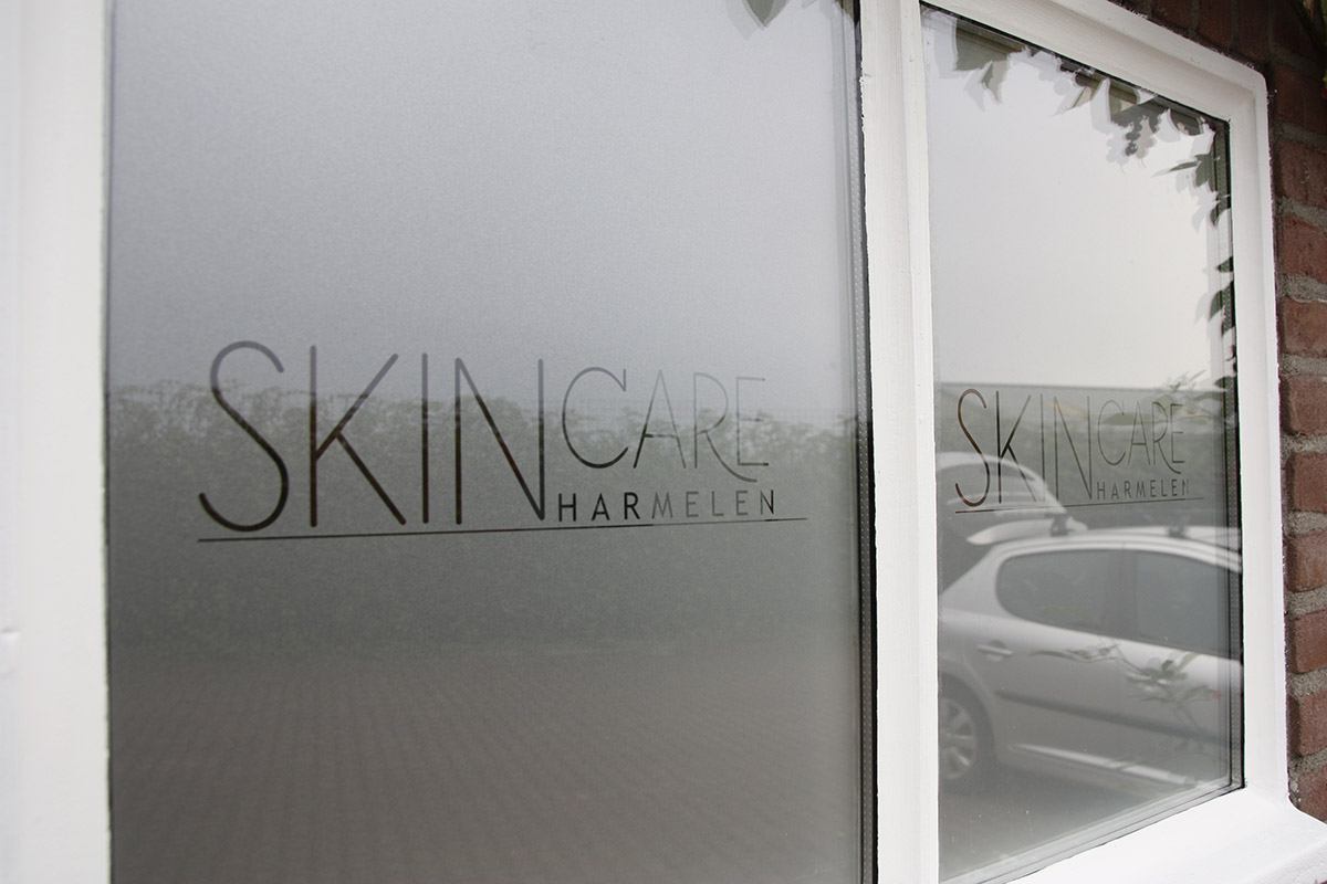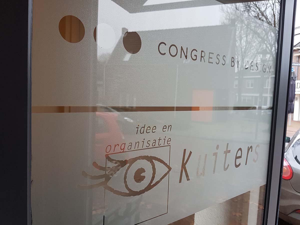Teksten en logo's gesneden uit zandstraalfolie