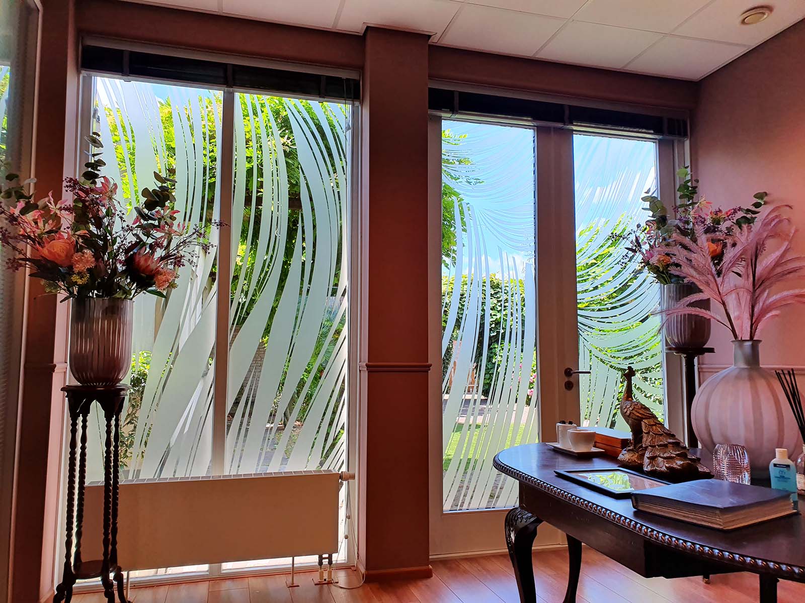DecoPartners gebruikt enkel duurzame zandstraalfolie van Avery. De folie heeft een zeer lange levensduur en is bovendien geschikt voor alle typen glas. DecoPartners ontwerpt, produceert en monteert zandstraalfolie vakkundig en snel voor u op maat.