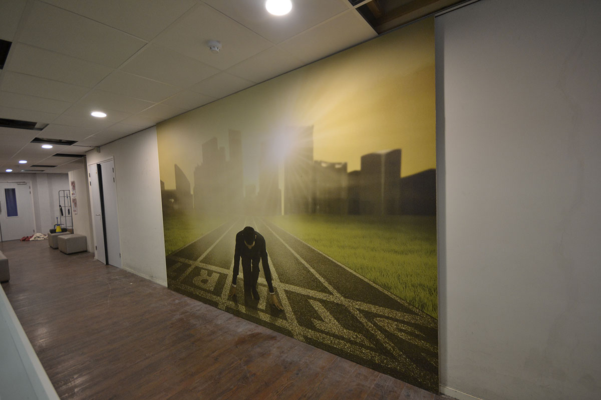 Het grote voordeel van textiele wandbekleding is dat er tussen het fotodoek en uw muur een geluidsdempend doek kan worden aangebracht. Naast dat de geluidsdempende functie is het ook nog eens thermisch isolerend. De textiele wandbekleding wordt geheel op maat gemaakt en kan, indien gewenst, ook zelf eenvoudig worden aangebracht. Onze textiele wandbekleding is hét alternatief voor naadloos fotobehang, voor zowel de particulier als zakelijke klant.