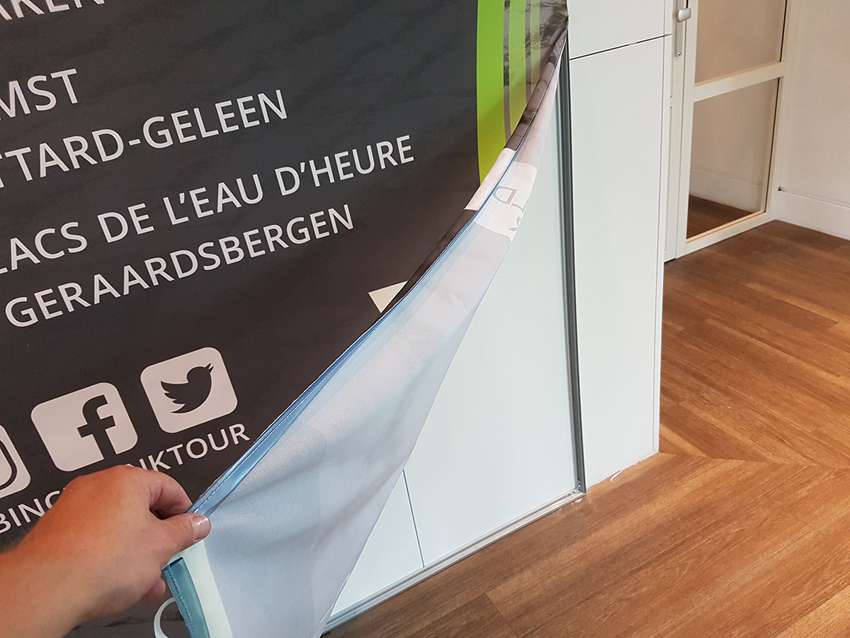 Moet uw wandbekleding altijd van behang zijn? Heeft u bijvoorbeeld wel eens gedacht aan textiel frames? Een textiel frame bestaat uit een dun maar stevig aluminium frame wat strak op uw wand wordt bevestigd. Hierin wordt eenvoudig een fullcolor bedrukt doek gespannen door deze in het frame te klemmen. Hierdoor onstaat er een naadloos en plooivrij resultaat. Ideaal voor muren die in slechte staat zijn of niet te behangen zijn zoals oneffen en beschadigde wanden, of wanden met een korrel of structuur. Bovendien zijn de doeken eenvoudig dor u zelf verwisselbaar. Geen behang stomen of opnieuw uw wand stucen en lijmen, slechts een nieuw fotodoek bestellen er deze erin drukken. Binnen 15 minuten is uw wand voorzien van een nieuwe bedrukking!